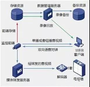 完整的視頻監控系統是由攝像機、傳輸、控制、顯示、存儲錄像5大部分組成。攝像機通過網絡線纜或同軸視頻電纜將視頻圖像傳輸到控制主機,控制主機再將視頻信號分配到各監視器及錄像設備,同時可將需要傳輸的語音信號同步錄入到錄像機內。 通過控制主機,操作人員可發出指令,對云臺的上、下、左、右的動作進行控制及對鏡頭進行調焦變倍的操作,并可通過視頻矩陣實現在多路攝像機的切換。利用特殊的錄像處理模式,可對圖像進行錄入、回放、調出及儲存等操作。