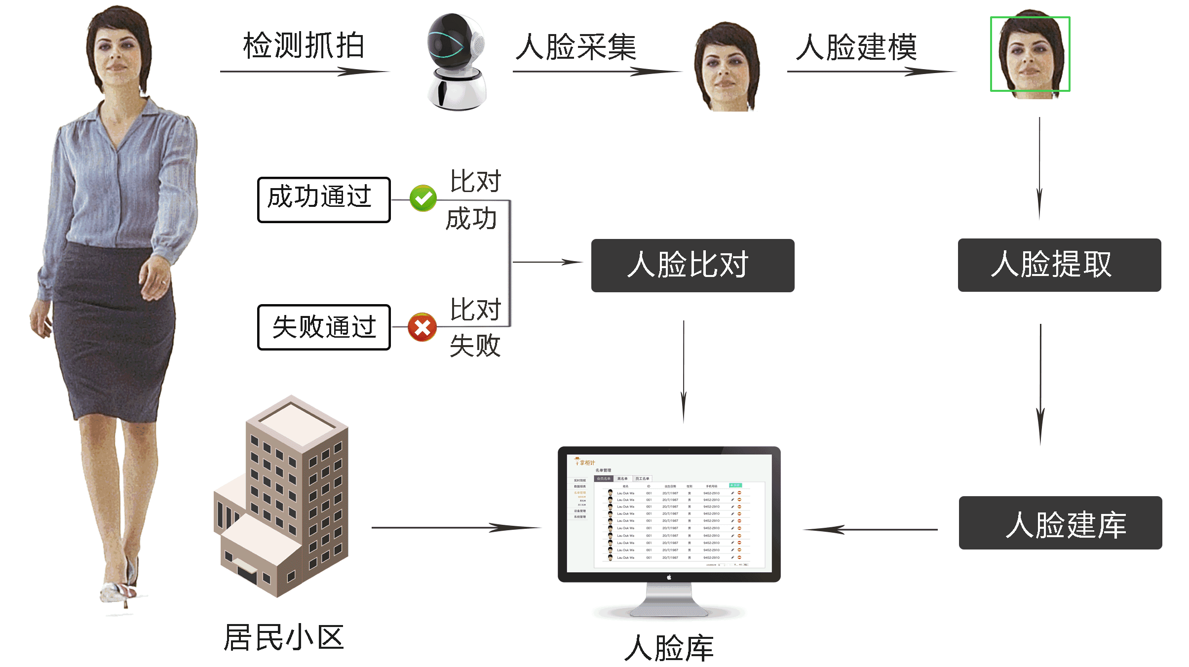 1.將住戶人臉圖像、身份信息導入系統人臉庫;