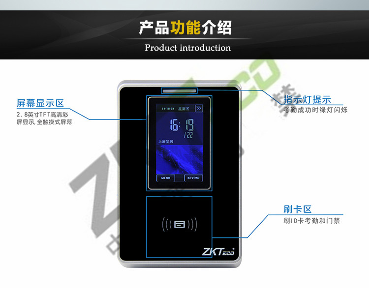 門禁功能:電鎖、出門開(kāi)關(guān)、報(bào)警、門磁、多種驗(yàn)證方式