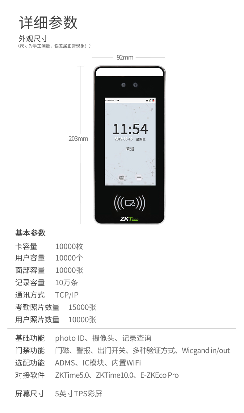基礎(chǔ)功能 記錄查詢(xún)、Photo ID、帶攝像頭